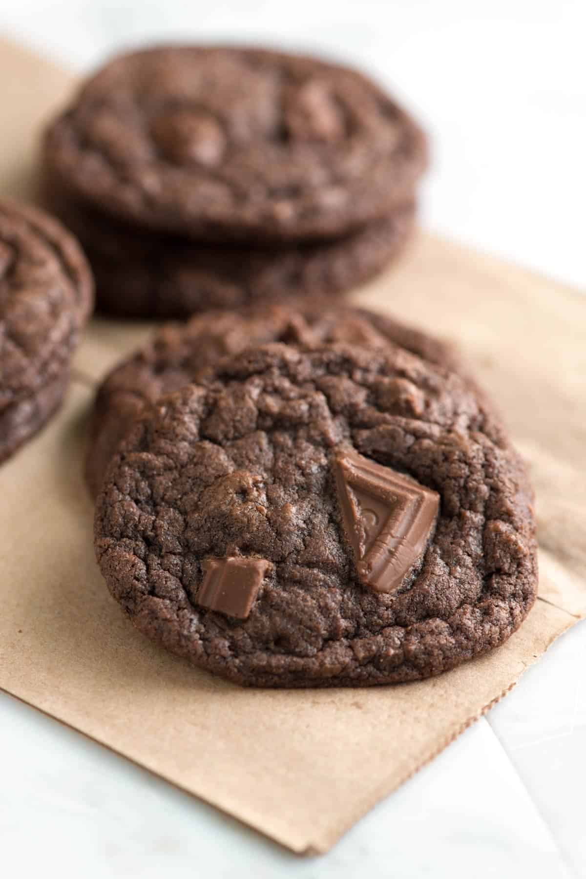 When a chocolate craving hits, these are always high on my list. The dough starts with cocoa powder for a rich chocolate flavor, then we double down with chunks of chocolate mixed right in.