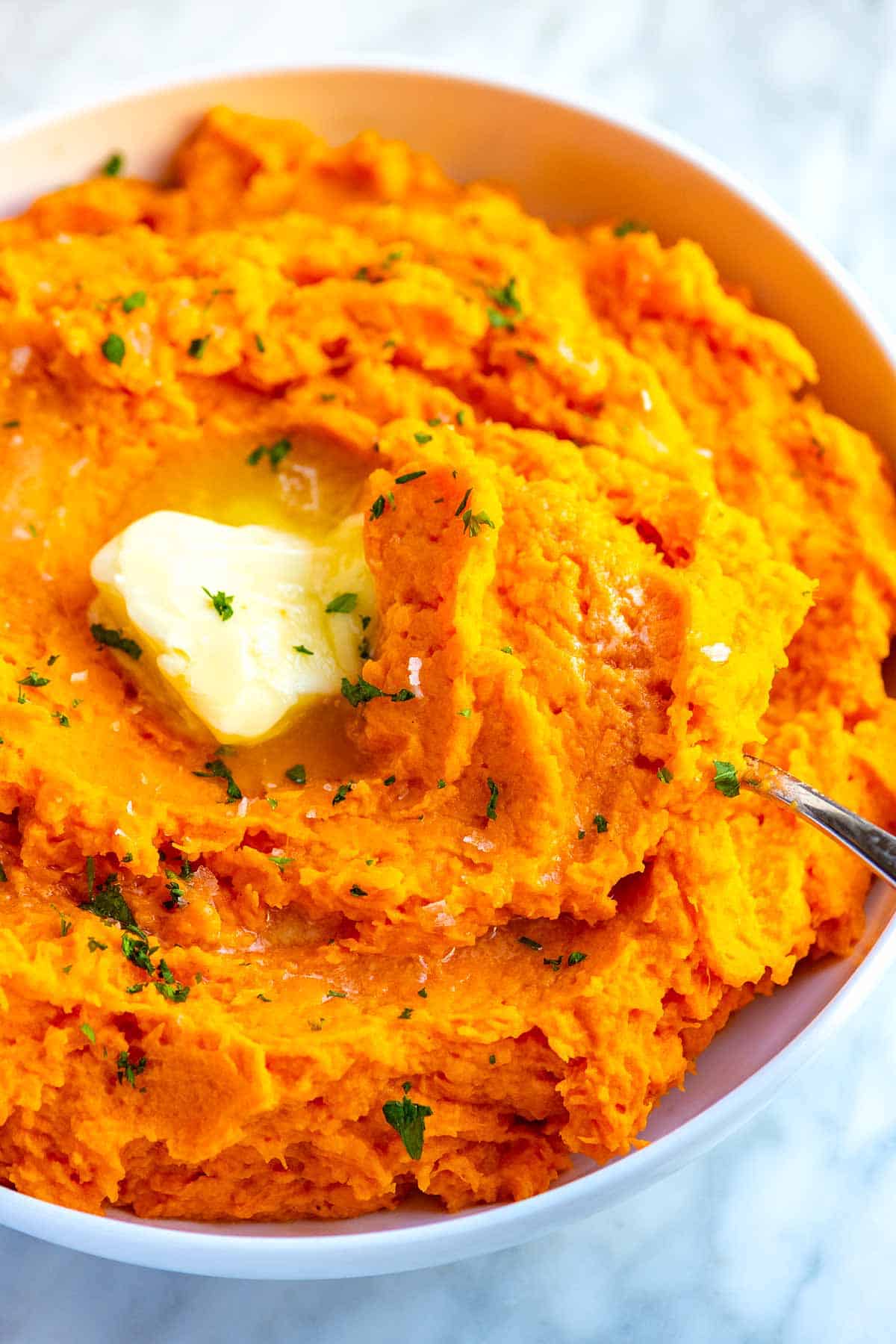 This mashed sweet potato recipe is quick, simple, super creamy, and absolutely delicious!