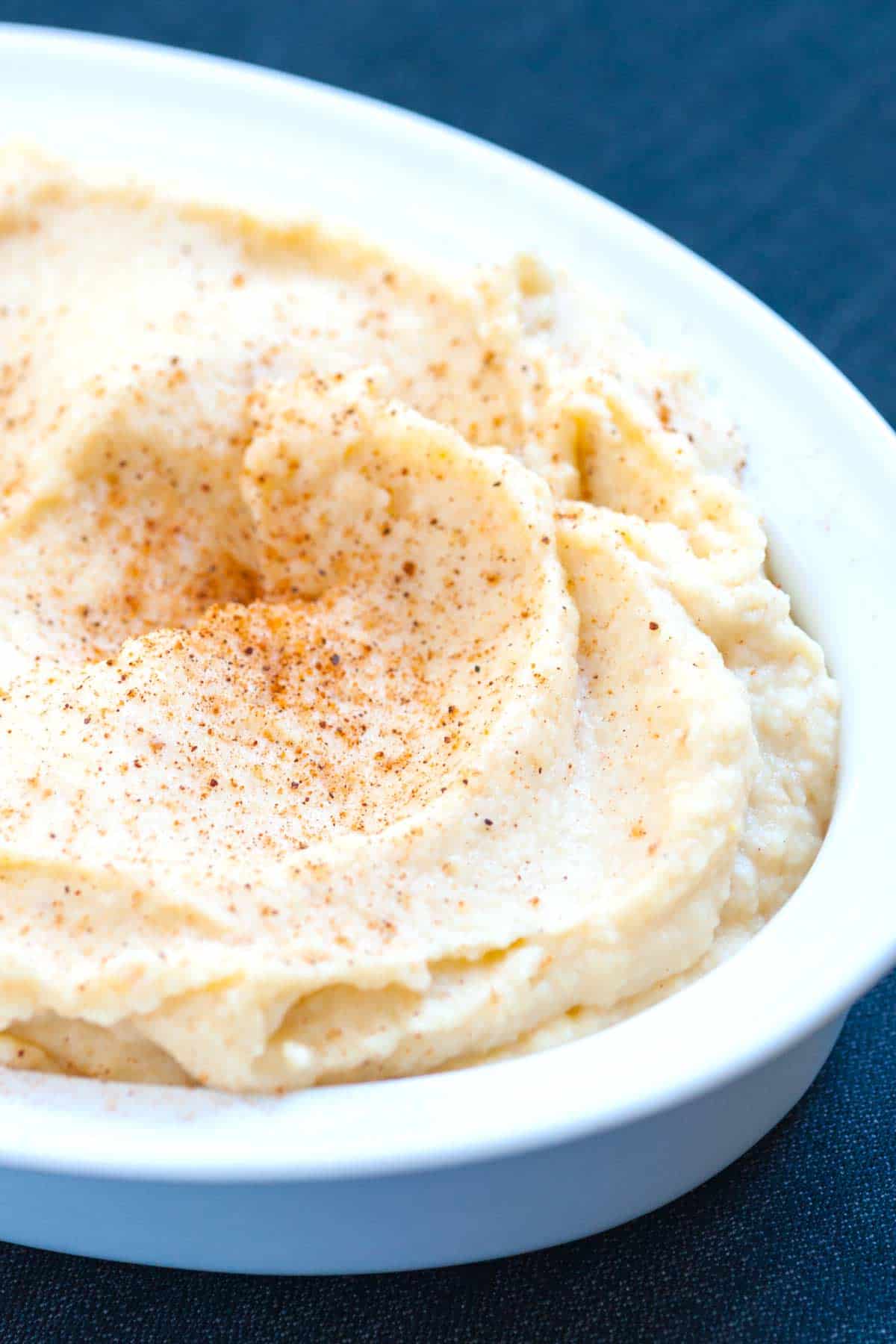Roasted parsnips become ultra smooth and creamy after puréeing them. You can leave this parsnip purée plain, but we add a bit of cream and a touch of nutmeg to make it extra delicious. Serve this as you would mashed potatoes. I especially love this purée with roasted turkey (hello, Thanksgiving!), roasted chicken, and this incredible pork tenderloin with apples.
